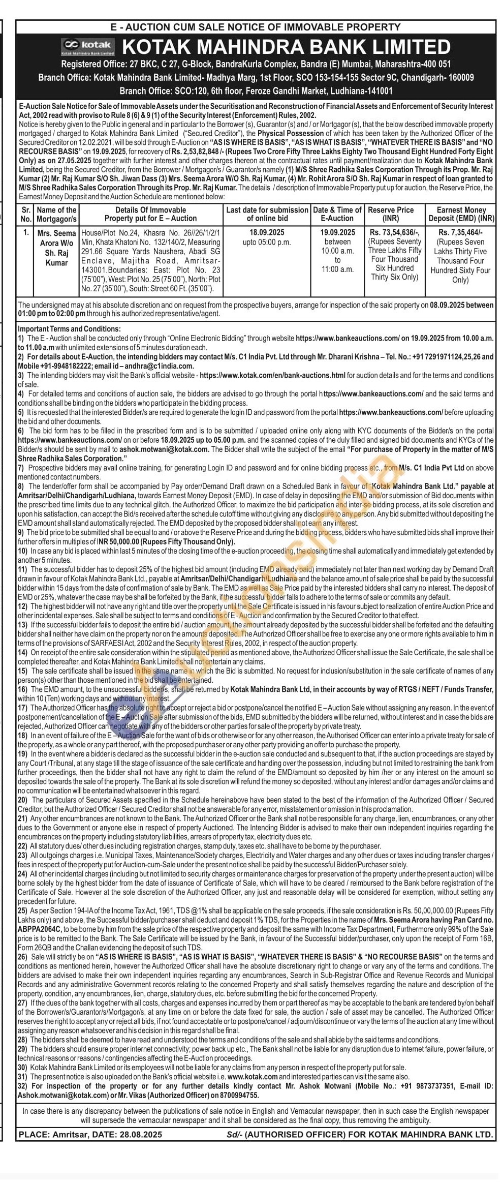 House/Plot No.24, Khasra No. 26//26/1/2/1 Min, Khata Khatoni No. 132/140/2, Measuring 291.66 Square Yards Naushera, Abadi SG Enclave, Majitha Road, Amritsar-143001.Boundaries: East: Plot No. 23 (75'00"), West: Plot No. 25 (75'00"), North: Plot No. 27 (35'00"), South: Street 60 Ft. (35'00").