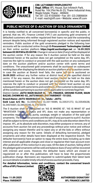 IIFL Finance Gold Auctions Auction in Faridkot