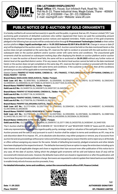 IIFL Finance Gold Auctions Auction in Panipat