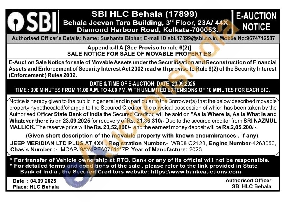 JEEP MERIDIAN LTD PLUS AT 4X4, Registration Number.- WB08 Q2123, Engine Number-4263050, Chasis Number: MCAPJ9AY4PFA07611*7P, Year of Manufacture: 2023