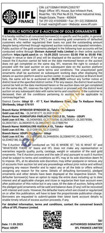 IIFL Finance Gold Auctions Auction in Udupi