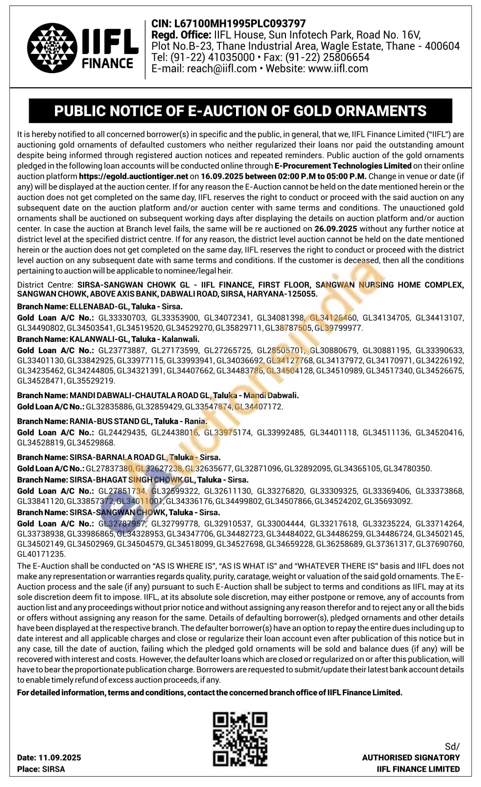 IIFL Finance Gold Auctions Auction in Sirsa