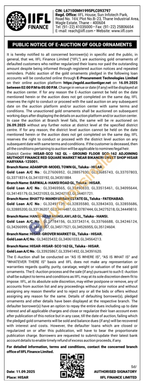 IIFL Finance Gold Auctions Auction in Hisar