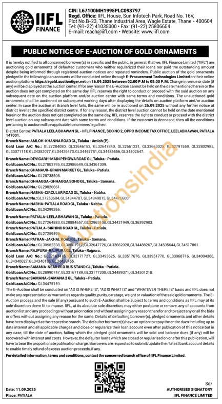IIFL Finance Gold Auctions Auction in Patiala