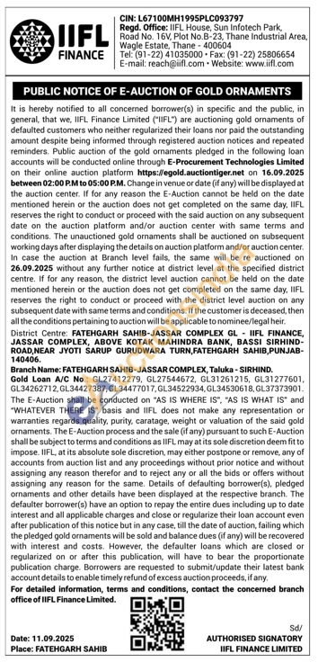 IIFL Finance Gold Auctions Auction in Fatehgarh Sahib