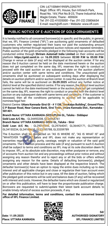 IIFL Finance Gold Auctions Auction in Uttara Kannada