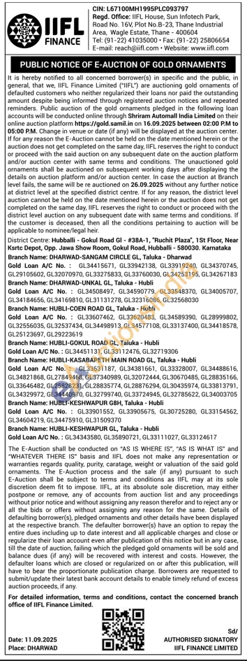IIFL Finance Gold Auctions Auction in Hubballi