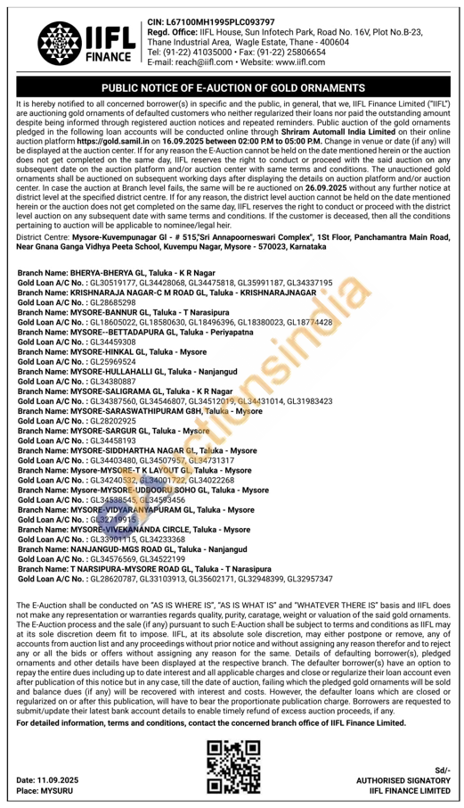 IIFL Finance Gold Auctions Auction in Mysuru