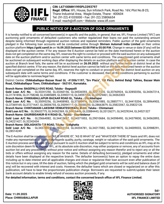 IIFL Finance Gold Auctions Auction in Chikkaballapur