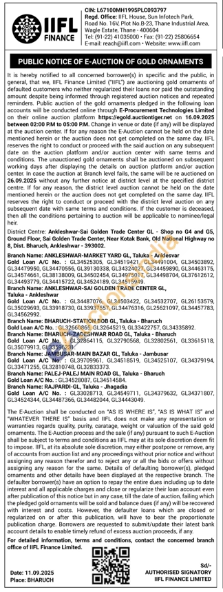 IIFL Finance Gold Auctions Auction in Bharuch