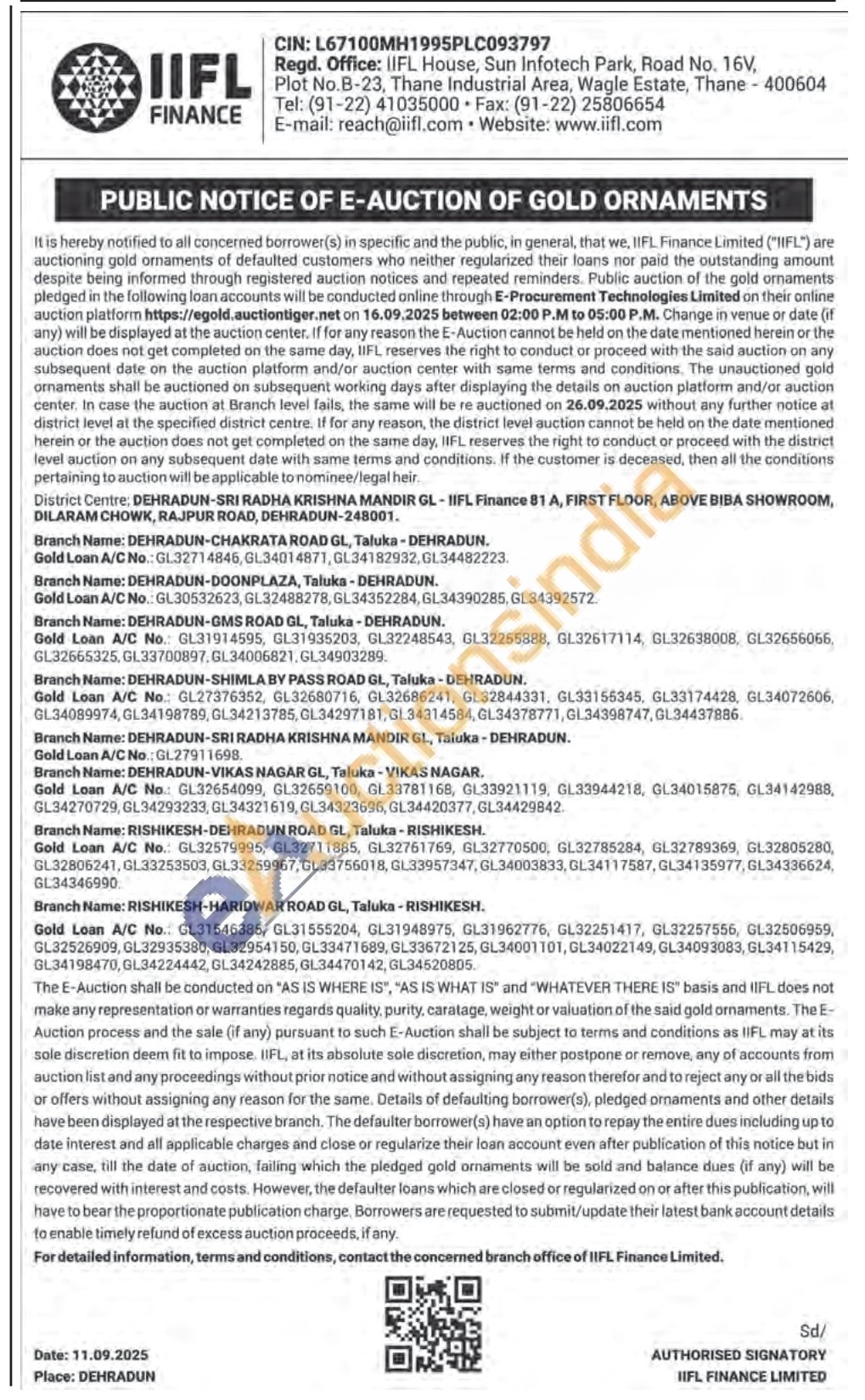 IIFL Finance Gold Auctions Auction in Dehradun