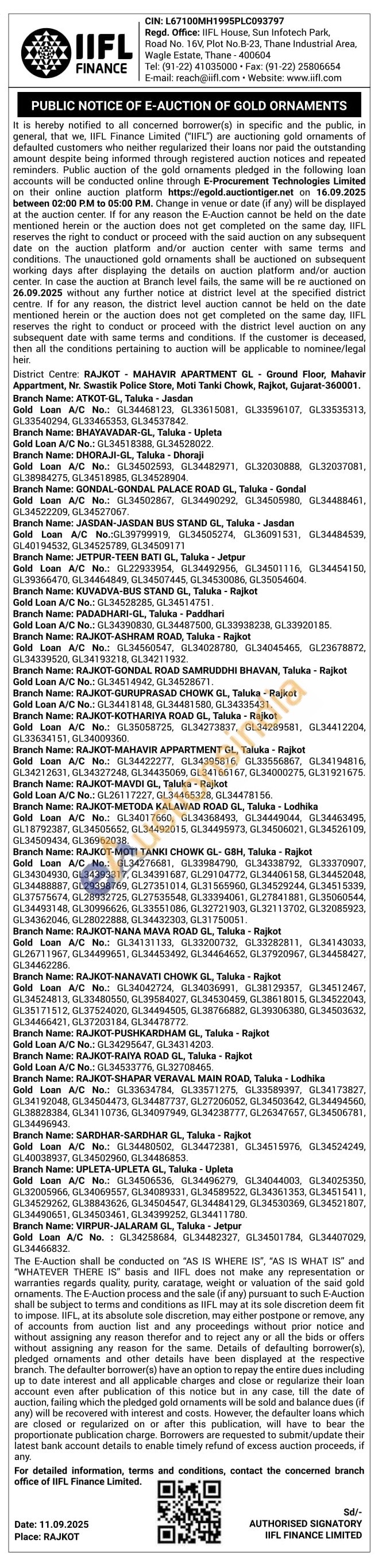 IIFL Finance Gold Auctions Auction in Rajkot