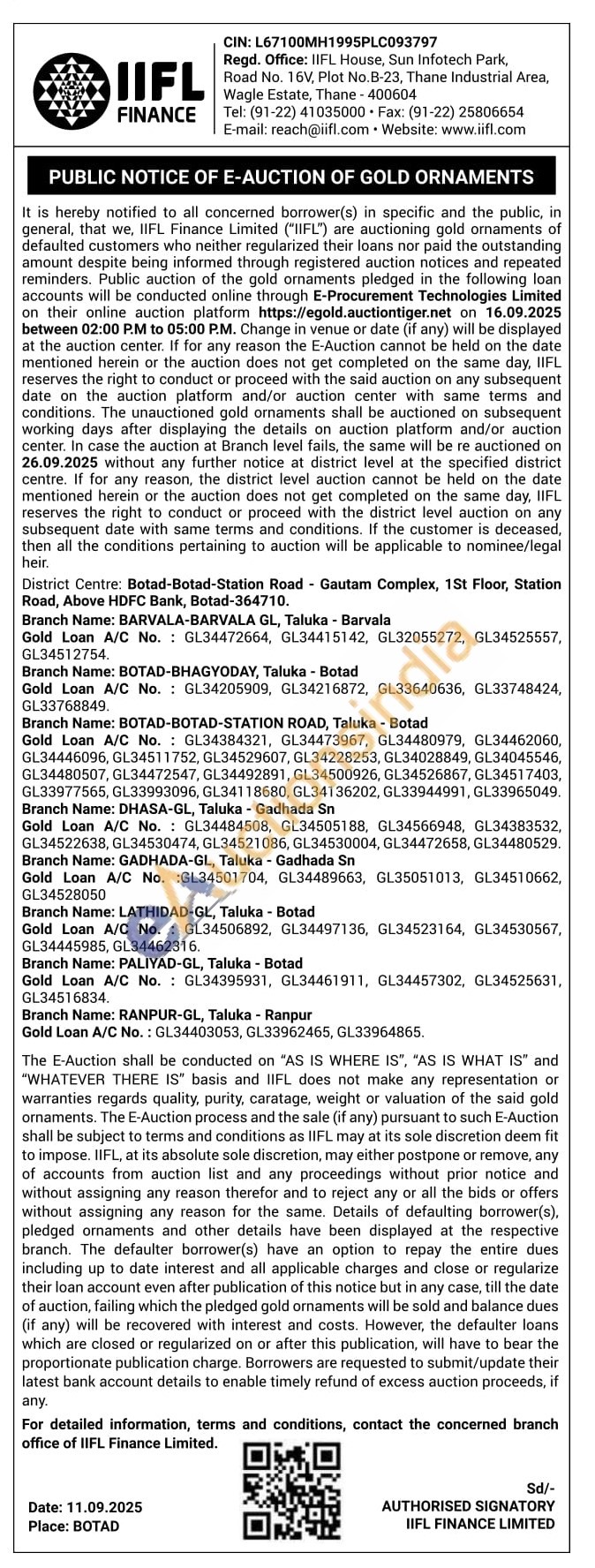 IIFL Finance Gold Auctions Auction in Botad