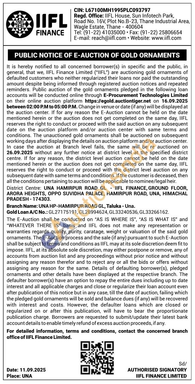 IIFL Finance Gold Auctions Auction in Una