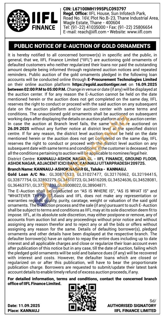 IIFL Finance Gold Auctions Auction in Etawah