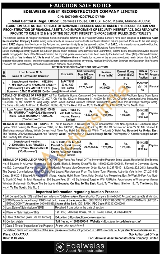 That In Respect Of Residential House Constructed Over Non Agriculture Residential Open Space / Plot Bearing Its Municipal No. 2768, Pid No. 24/3508, Measuring 43.49 Sq Mtr, Out Of Constructed Area 22 Sq Mtr Situated At Bhairidevarakoppa Village, Which Comes Hubli Taluk And Hubli Sub Registrar Within The Limit Of Hubli And Bounded As Under: East: The Property Of Shivappa Mayakar And Pathway, West: The Property Of Savakka Mutagi: North: The Property Of Kotesh Hadagal: South: The Property Of Hissa No.1