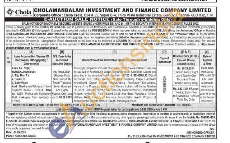 The subject property comprises of an extent of 3.036 Ares of land in Resurvey no US 823 in Koorachund village. Koyllandy Taluk. Kozhikode District and described in the schedule to Gift deed No 1187/2019. SCHEDULE District Kozhikode, Sub District Koorachund, Taluk Koyllandy, Vilage / Amscam Koorachund, Desom Kara Pilaperuvanna, Panchayath Koorachund Nature of the Property/Type of Land Kanam thottam old Survey Number LUS 823/1, Resurvey Number Nil, Resurvey Block Number Ni, Thandapper Account number Nil, Area / Extent 3.036 Ares East: Property of Ninesh Matthew, West: Property of Aloshious Kurumuttathu, North: Property of Kothambanan Ninesth Mathew South: Panchayath Road