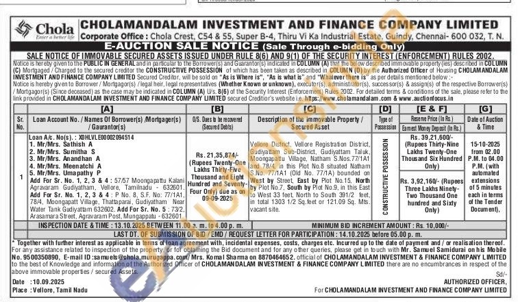 Vellore District, Vellore Registration District, Gudiyattam Sub-District, Gudiyattam Taluk, Moongapattu Village. Natham S.Nos.77/1A1 S.No. 77/1A1 (Old No. 77/1A) bounded on West by Street, East by Plot No. 15, North by Plot No.7. South by Plot No.9, in this East to West 33 feet, North to South 391/2 teet. and 78/4, in this Plot No.8 situated Natham in total 1303 1/2 Sq.feet or 121.09 Sq. Mts. vacant site