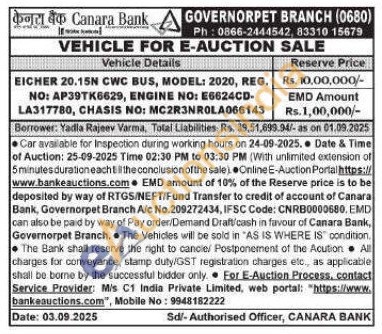 EICHER 20.15N CWC BUS, MODEL: 2020, REG. NO: AP39TK6629, ENGINE NO: E6624CD- LA317780, CHASIS NO: MC2R3NROLA066143