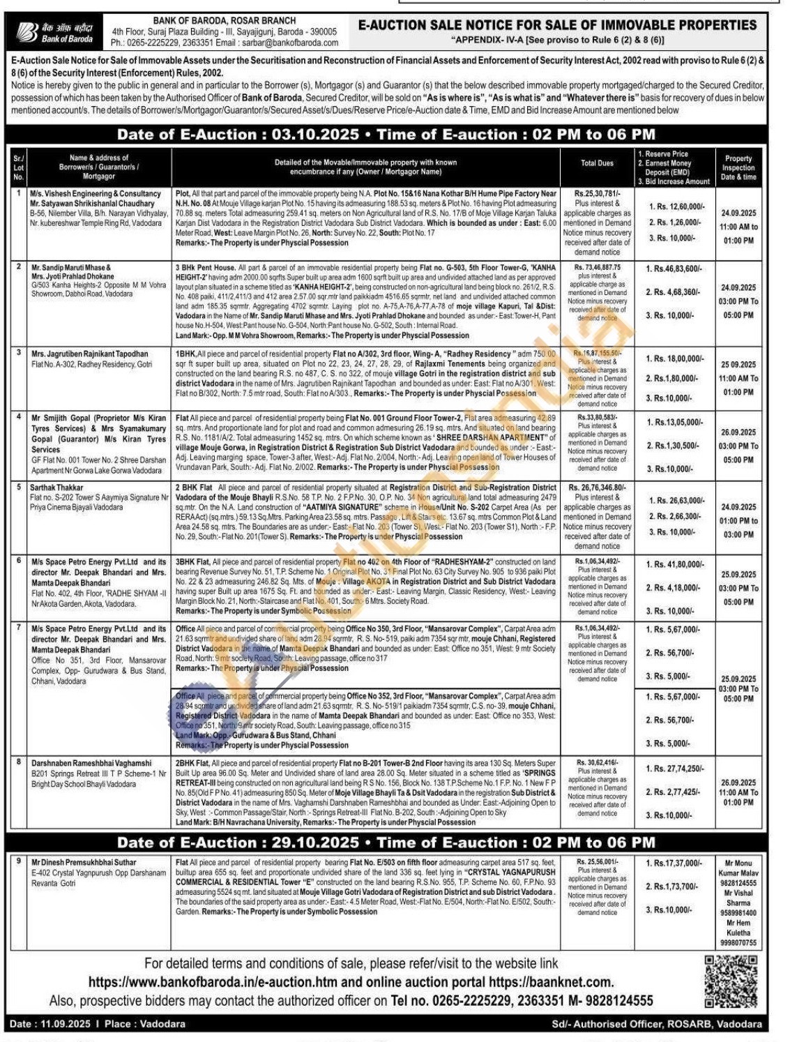 contact the authorized officer on Tel no. 0265-2225229, 2363351 M-9828124555