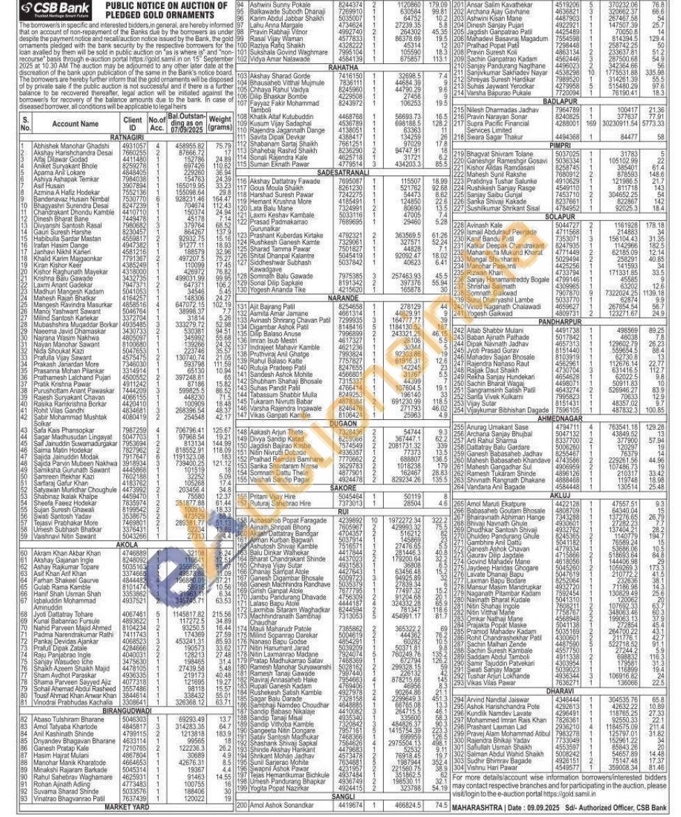 CSB Bank Gold Auctions Auction in Ratnagiri