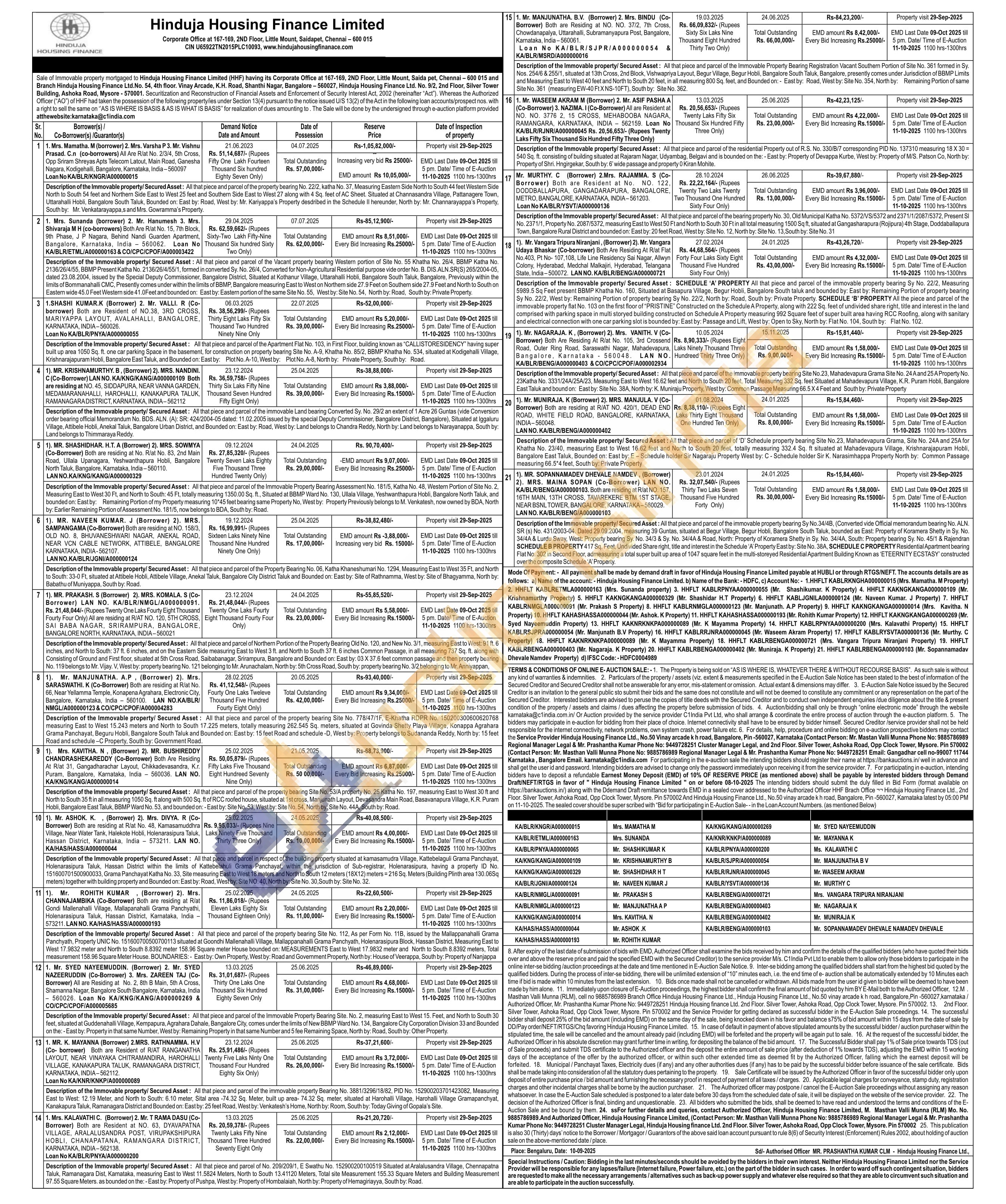 Contact Authorized Officer, M. Masthan Valli Munna (RLM) Mo. No. 9885786989.And Authorized Officer(Contact Person: Mr. Masthan Valli Munna Phone No: 9885786989 , Phone No: 9449728251