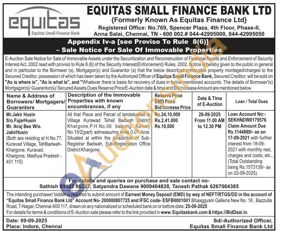 All that Piece and Parcel of landsituated in Village Kurawad Tehsil Badwah District Khargone, P.H.No.06 bearing Survey No.15/2(part) admeasuring Area 0.07 Acre. Situated at within the jurisdiction of Sub-Registrar Badwah, Sub-Registration Office District Khargone