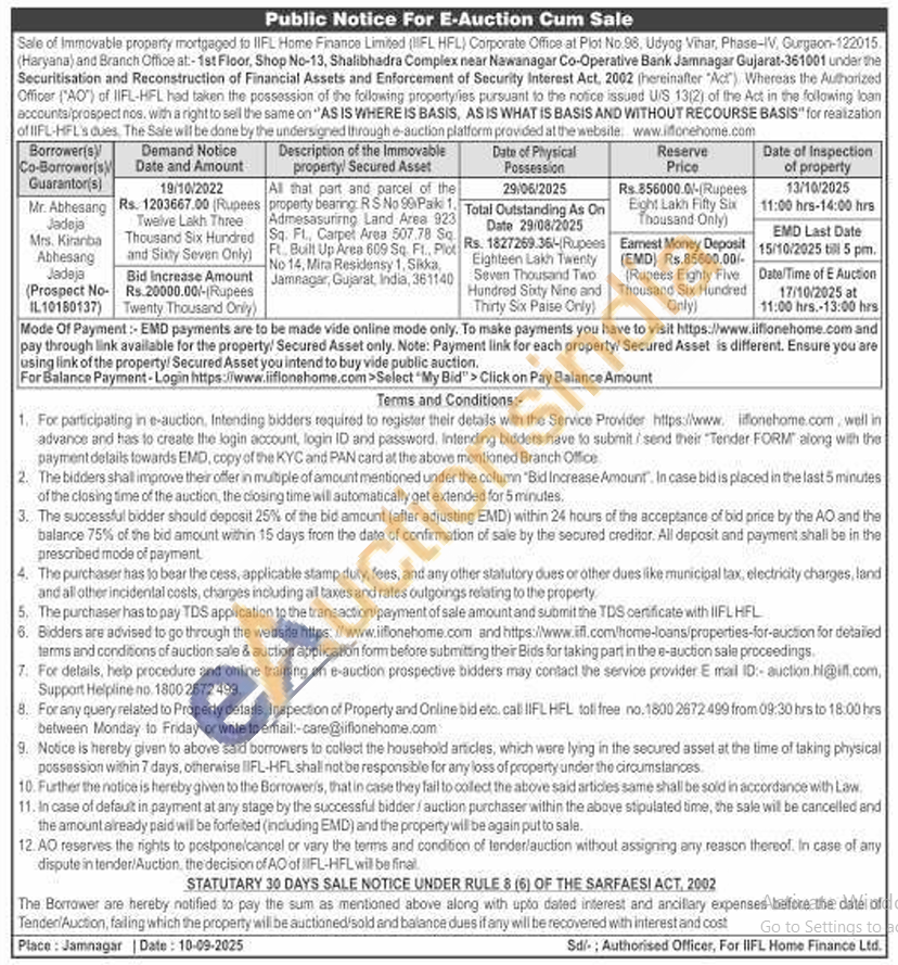 All that part and parcel of the property bearing. RS No 80 Paik 1. Admesasurirng Land Area 923 Sq. Ft, Carpet Area 507.78 Sq Ft. Built Up Area 609 Sq. Ft., Plot No 14, Mira Residensy 1, Sikka, Jamnagar, Gujarat, India, 361140