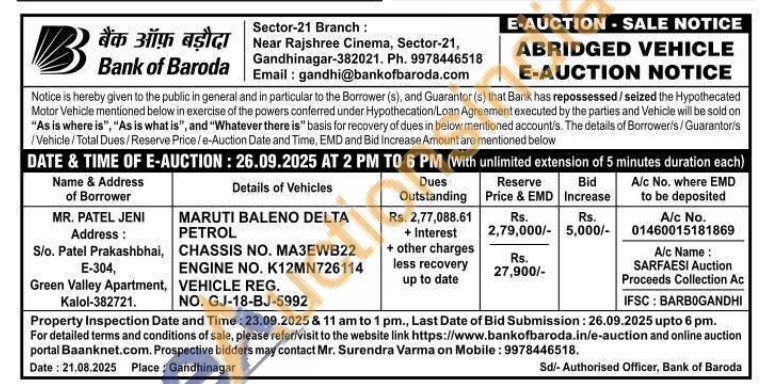 MARUTI BALENO DELTA PETROL CHASSIS NO. MA3EWB22 ENGINE NO. K12MN726114 VEHICLE REG NO. GJ-18-BJ-5992