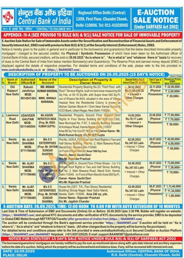 Plot No. 2420 A, Ground Floor (Three Shops-1 to VI) Without Roof Rights in Two and Half Storey Building, Plot No. 2, Main Bawana Road, Mandi Extn. Narela, Delhi-110040. (in Front of Ram Mandir) Area 558 Sq Ft. Owner-Name Savitri Devi