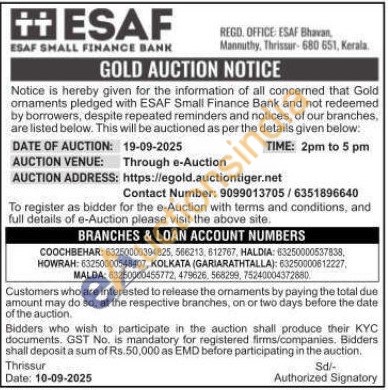 ESAF SMALL FINANCE BANK Gold Auctions Auction in Cooch Behar