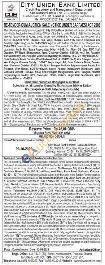 All that the property bearing Near R.S. No 21918, Near D.No 3-36, in total extent of 290.4+ 671961.40 Sq. yds of Site, Komaguntapalem Vitage. Mudinepalli Mandal, Krishna District and bounded by s under 1st Item Doct. No 2006/2018: East: Remaining land of the executant in this Survey Number. West: Land of Bandi Konda. North Site of Sagiraju Ramaraju. South Site of Seelam Srinivasa Rao Within the above boundaries an extent of 2904 square yards of Site and all other easements etc 2nd Item Doct. No. 2805/2018: East Property of Sagraju Venkata Satyanarayana Raju. West Property of Bandi Konda North Road (N.H.214 Bhimavaram Vijayawada), South Property of Sagraju Ramaraju Within the above boundaries an extent of 671 square yards of Site along with an RCC building and all other easements etc. Within the above boundaries a total extent of 2904671 961.4 Square yards of Site along with an RCC building and all other easements etc
