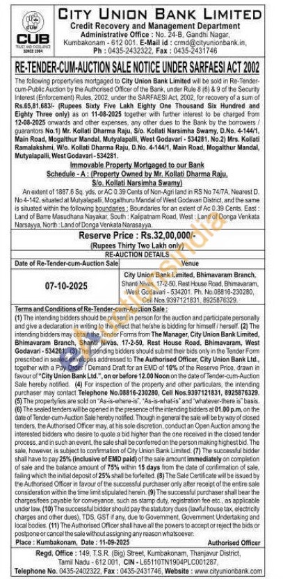An extent of 1887.6 Sq. yds, or AC 0:39 Cents of Non-Agri land in RS No 74/7A, Nearest D. No-4-142, situated at Mutyalapalli, Mogaithuru Mandal of West Godavari District, and the same is situated within the following boundanes: Boundaries for an extent of Ac 0.39 Cents. East: Land of Barre Masudhana Nayakar, South: Kalipatnam Road, West: Land of Donga Venkata Narsayya, North Land of Donga Venkata Narasayya