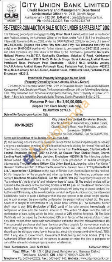 Contact Telephone No 0484-2988850. Cell No. 9349287690