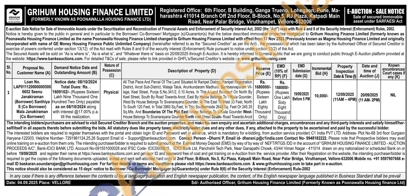 All That Piece And Parcel Of The Land Situated At Ranipet District, Ranipet Registration District, Arcot Sub-District, Walaja Taluk, Arunkundaram Madhura, Sambasivapuram VII-lage, Keel Street, Punja S.No.341/2, 0.10 Acres, In This A Land Bounded On North By Keel Street, South By Road Towards Arcot, East By House Belongs To V.Kista Gounder, West By House Belongs To Sivanarayana Gounder, In This East To West 33 Feet, North To South 120 Feet, In Total 3960 Sq. Feet, In This Southemside 2640 Sq. Feet Or 245.35 Sq.Mts. And Boundaries Of The Plot East house Belongs To V.Kista Gounder West-House Belongs To Sivanarayana Gounder North keel Street South-Road Towards Arcot
