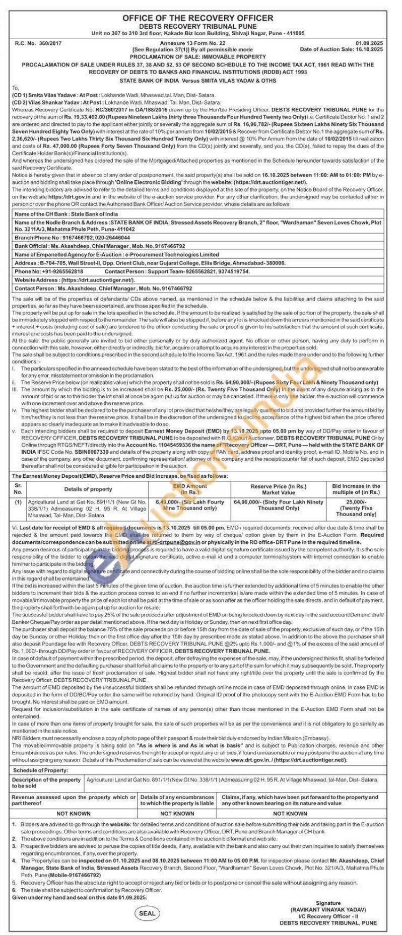 Ms. Akashdeep, Chief Manager, Mob. No. 9167466792