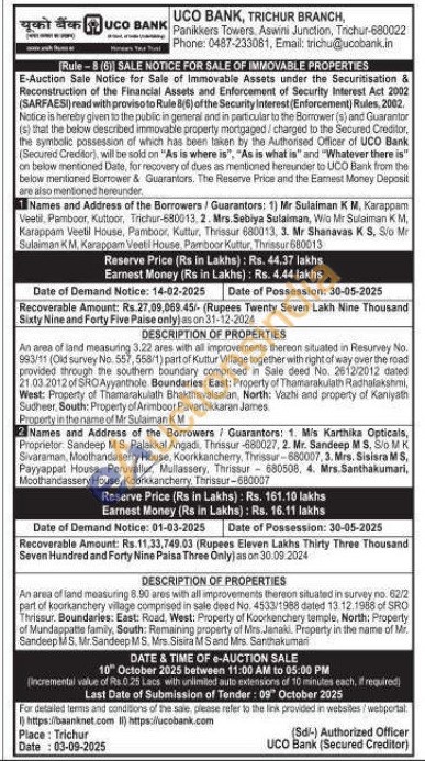 An area of land measuring 8.90 ares with all improvements thereon situated in survey no. 62/2 part of koorkanchery village comprised in sale deed No. 4533/1988 dated 13. 12.1988 of SRO Thrissur Boundaries: East: Road, West: Property of Koorkenchery temple, North: Property of Mundappatte family, South: Remaining property of Mrs.Janaki. Property in the name of Mr. Sandeep MS, Mr.Sandeep MS. Mrs. Sisira M Sand Mrs. Santhakuman