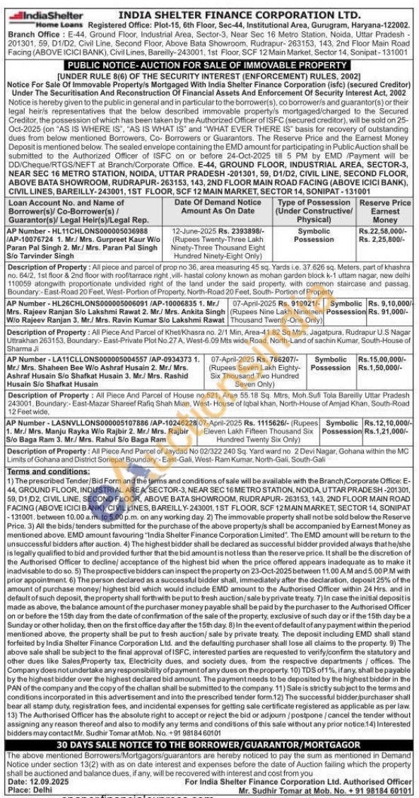 All Piece And Parcel of House no.521, Arae 55.18 Sq. Mtrs, Moh. Sufi Tola Bareilly Uttar Pradesh 243001, Boundary: East-Mazar Shareef Rafiq Shah Mian, West-House of Iqbal khan, North-House of Amjad Khan, South-Road 12 Feet wide,