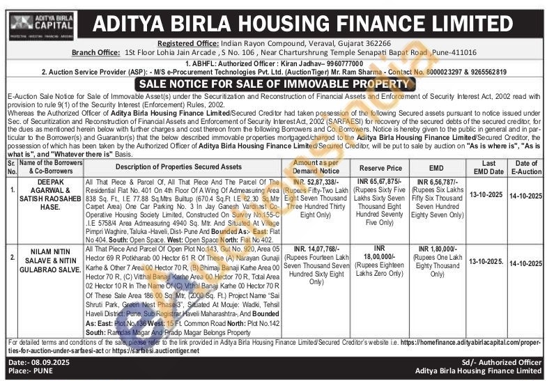 All That Piece And Parcel Of Open Plot No.143, Gut No. 920, Area 05 Hector 69 R Potkharab 00 Hector 61 R Of These (A) Narayan Gunaji Karhe & Other 7 Area 00 Hector 70 R, (B) Bhimaji Banaji Kathe Area 00 Hector 70 R, (C) Vitthal Banaji Karhe Area 00 Hector 70 R, Total Area 02 Hector 10 R In The Name Of (C) Vithal Banaj Karhe 00 Hector 70 R Of These Sale Area 186.00 Sq. Mtr, (2000 Sq. Ft.) Project Name "Sai Shruti Park, Green Nest Phase-3", Situated At Mouje: Wadki, Tehsil Haveli District: Pune, Sub Registrar Haveli Maharashtra-, And Bounded As: East: Plot No. 136 West: 15 FL. Common Road North: Pict No.142 South: Ramdas Magar And Pradip Magar Belongs Property
