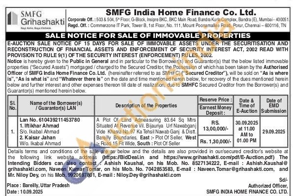 A Plot Of Land Admeasuring 83.64 Sq Mtrs Situated At Revenue Vil. Bijauriya Urf Nawabganj Vide Khasra No. 97 Ka Tehsil Nawab Ganj & Distt. Bareilly Boundaries, East: Plot Of Seller, West :- Road 15 Fit Wide, South: Plot Of Seller