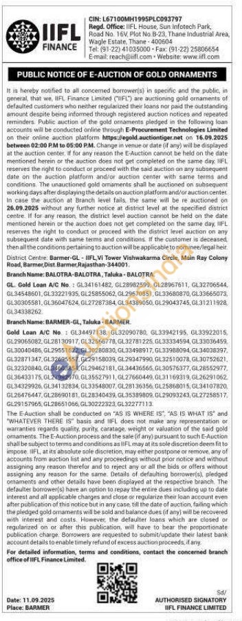 IIFL Finance Gold Auctions Auction in Barmer