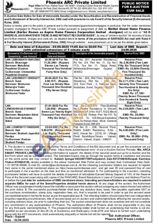 2) Flat No-206, 2Nd Floor, Sahjanand Residency. Plot No. 230, 231, 232, Soni Park 2. Tatithiya Gam, Kadodara, Surat, Gujarat-394327