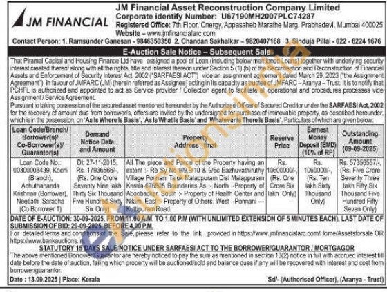 All The piece and Parcel of the Property having an extent Re Sy No 9/9,9/10 & 96c Eazhuvathiruthy Village Ponnani Taluk Malappuram Dist Malappuram Kerala-676505 Boundaries As North Property of Aboobacker. South Property of Health Center and Nilam. East Property of Others West:-Ponnani Kuttipuram Road