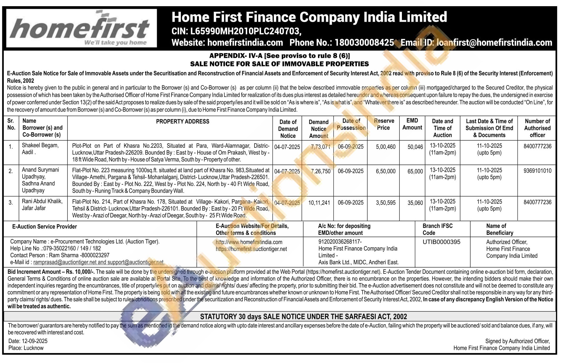Flat-Plot No. 223 measuring 1000sq.ft. situated at land part of Khasra No. 983, Situated at Village-Amethi, Pargana & Tehsil-Mohanialganj, District-Lucknow, Uttar Pradesh-226501. Bounded By: East by - Plot No. 222, West by - Plot No. 224, North by -40 Ft Wide Road, South by-Runing Track & Company Boundary Wall.