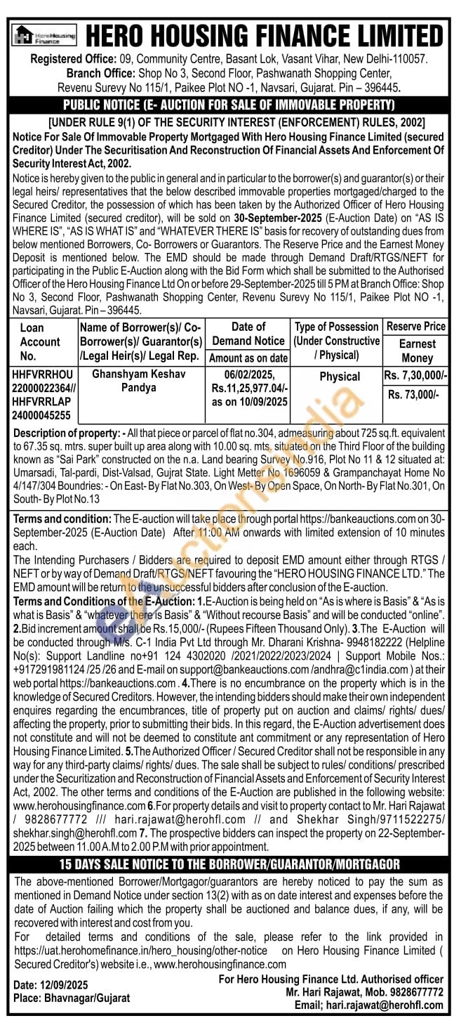 Contact Authorised officer Mr. Hari Rajawat, Mob. 9828677772