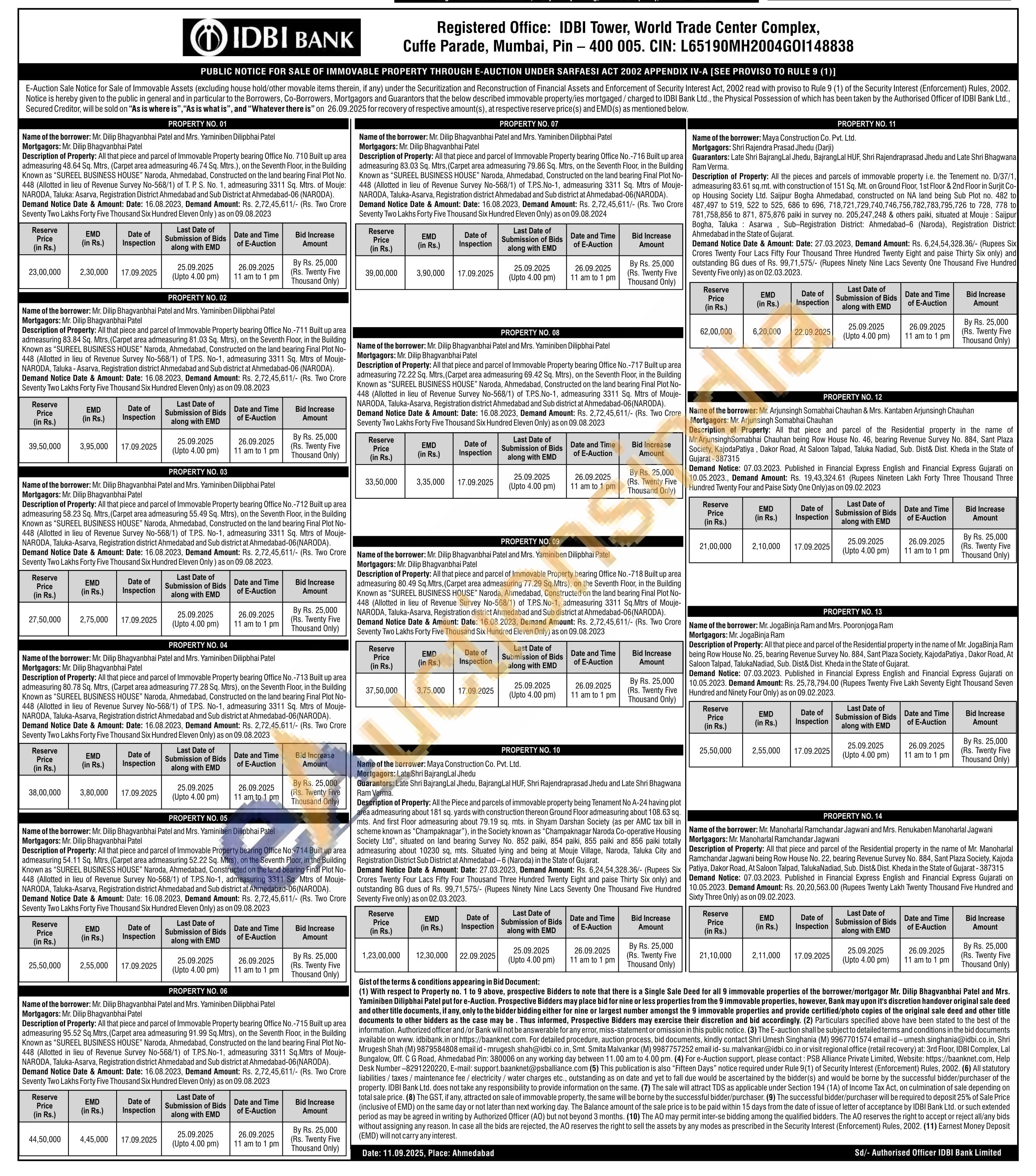 Description of Property: All that piece and parcel of Immovable Property bearing Office No.-714 Built up area admeasuring 54.11 Sq. Mtrs, (Carpet area admeasuring 52.22 Sq. Mtrs), on the Seventh Floor, in the Building Known as "SUREEL BUSINESS HOUSE" Naroda, Ahmedabad, Constructed on the land bearing Final Plot No-448 (Allotted in lieu of Revenue Survey No-568/1) of T.P.S.No-1, admeasuring 3311 Sq. Mtrs of Mouje-NARODA, Taluka-Asarva, Registration district Ahmedabad and Sub district at Ahmedabad-06(NARODA). Demand Notice Date & Amount: Date: 16.08.2023, Demand Amount: Rs. 2,72,45,611/- (Rs. Two Crore Seventy Two Lakhs Forty Five Thousand Six Hundred Eleven Only) as on 09.08.2023