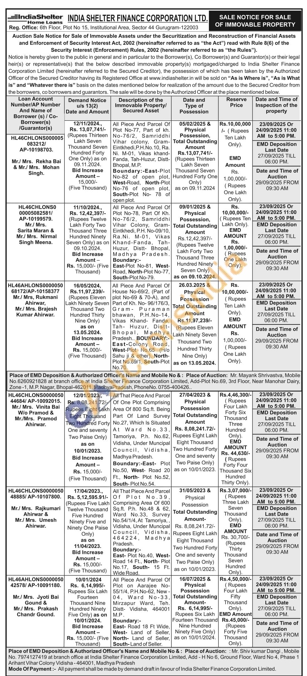 All That Piece And Parcel Of One Plot Comprising Area Of 800 Sq.ft. Being Part Of Land Survey No.27, Which Is Situated At Ward No.33, Tamoriya, P.h. No.62. Vidisha, Under Muncipal Council, Vidisha, Madhya Pradesh.Boundary:-East- Plot No.50, West Road 20 Ft., North Plot No.52, South-Plot No.54