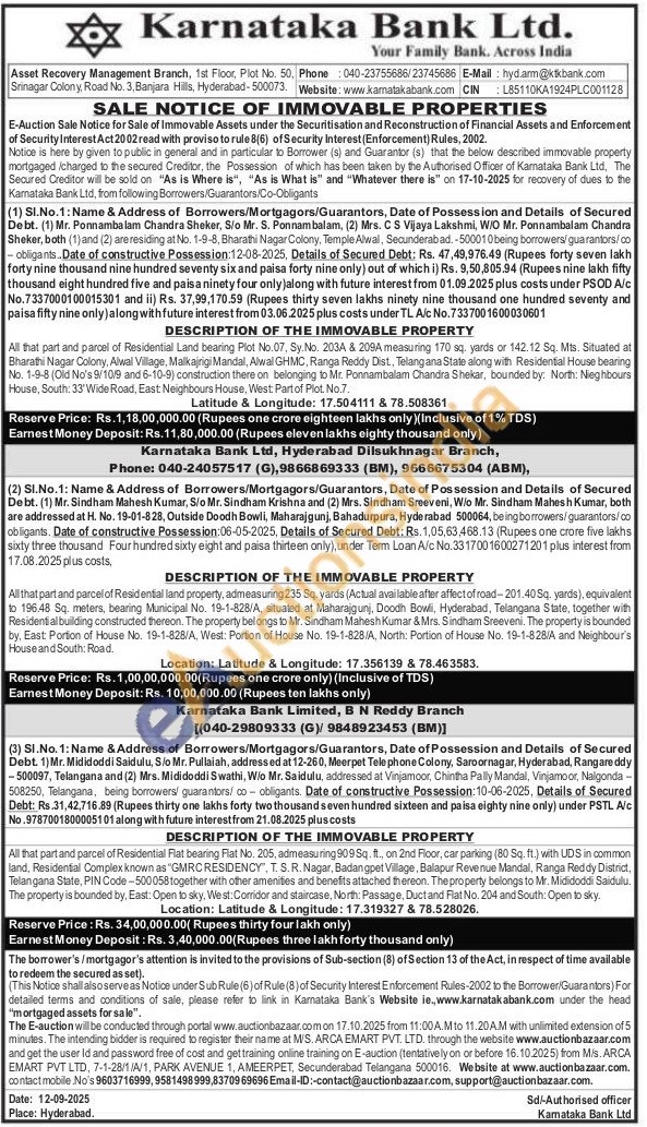 All that part and parcel of Residential land property, admeasuring 235 Sq. yards (Actual available after affect of road-201.40 Sq, yards), equivalent to 196.48 Sq. meters, bearing Municipal No. 19-1-828/A, situated at Maharajgunj, Doodh Bowli, Hyderabad, Telangana State, together with Residential building constructed thereon. The property belongs to Mr. Sindham Mahesh Kumar & Mrs. Sindham Sreeveni. The property is bounded by. East Portion of House No. 19-1-828/A, West: Portion of House No. 19-1-828/A, North: Portion of House No. 19-1-828/A and Neighbour's House and South: Road.