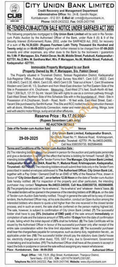 The Property situated in Tirunelvell District, Tenkasi Registration District, Kadayanallur Sub-Registrar Office, Pudukudi Village, Punjai Survey Nos 484/1, Cent 0.07, 482/2, Cent 0:08,484/3, Cent 0.30, 484/4, Cent 0.85, 484/5 Cent 0.09. Total out of Acre 1, Cent 39 extreme Western end Cent 46, 1/3, Southem end from West-East direction 1st Plot Eastem Side of the Site in Possession of A. Chozhavan. Measuring East-West 27% feet, South-North 48 feet. Total 1,308 Sq.ft. 121.51 Sq.mtr. Vacant Site with rights to use as a common pathway through East-West Street, Northern Side of this Schedule Site with in the boundaries of West-Site in Possession of A.Chozhavan, South Road, North-16 feet wide. East-West Street, East-Vacant Site purchased by Senthil Kumar. This Site and RCC roofed house construction thereon with all doors, Windows, Electricity Connection, meter and meter deposit, wiring, fittings, bore well with electric motor fittings, sump and all other affixtures.