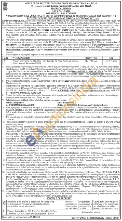 Property Bearing Flat No. 306, Third Floor, Block No. 23, Palm-Apartment, Cosmos Green, Bhiwadi, Rajasthan-301019